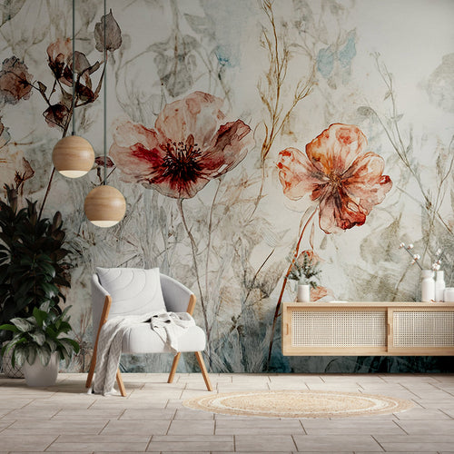 Kırmızı yapraklar Baskılı Duvar Kağıdı